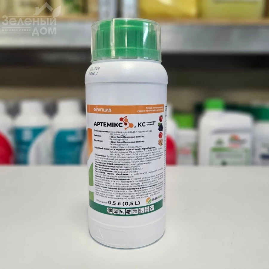 АРТЕМИКС является контактным фунгицидом, имеет профилактическое действие против широкого спектра возбудителей болезней и характеризуется мощным бактерицидным действием. После применения АРТЕМИКС на листовой поверхности образуется устойчивый защитный слой, который предотвращает поражение растений патогенами. Ионы меди, которые представлены в препарате в двух взаимодополняющих и усиливающих друг друга формах, высвобождаясь, накапливаются в клетках возбудителя и нарушают образование и деятельность ферментов, которые активируют и влияют на процессы дыхания и образования белков, чем вызывают необратимые изменения и гибель возбудителя.