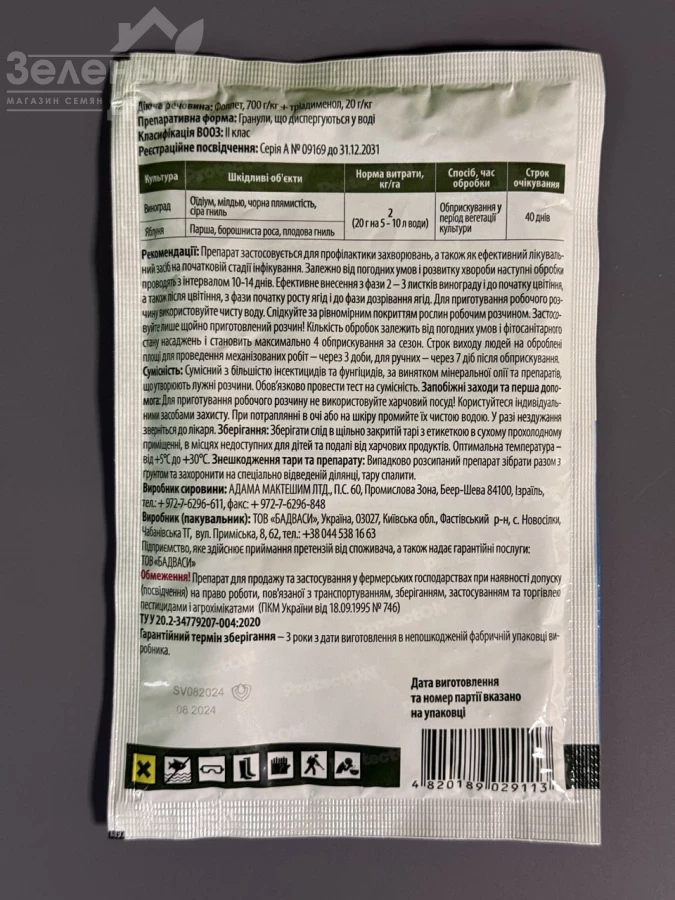 Действующее веществотриадименол, 20 г/кг + фолпет, 700 г/кг