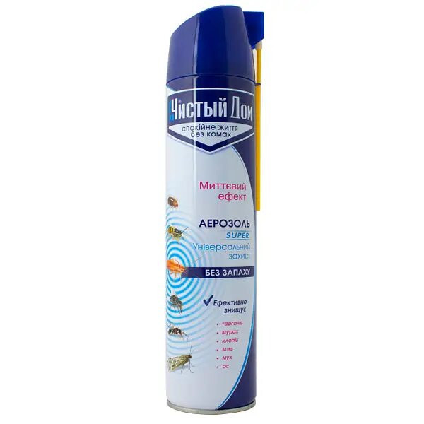 Аерозоль від усіх комах Чистий Дім миттєвий ефект 600 мл - ефективний і економний засіб миттєвої дії для знищення всіх комах, що літають і повзають.